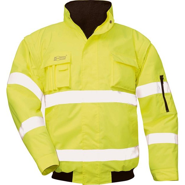 Jacheta tip pilota reflectorizanta TOM si ROLAND Aprobare/standard: EN ISO 20471, clasa 3 (vesta separat clasa 2), EN 343, clasa 3/1, EN ISO 13688 Proprietăți: Materialul este rezistent la vânt și la apă Impermeabil până la 2000 mm coloană de apă Glugă integrată în guler Mâneci detașabile 1 buzunar pe mânecă cu fermoar 2 buzunare la piept cu clape, partea dreaptă cu buzunar atașat pentru stilou și telefon mobil 2 buzunare laterale 1 buzunar interior în căptușeală Manșete reglabile cu manșete tricotate integrate Fixare simplă a emblemei prin fermoar în căptușeală Material exterior confecționat din țesătură Oxford Material: Material exterior: 100 % poliester, Oxford, acoperit cu PU Căptușeală: 100 % poliester