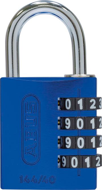 Lacat cu combinatie 144 Lacăt cu combinație de blocare Corp de blocare din aluminiu masiv cu acoperire anodizată Role numerice mari din plastic, rezistente la abraziune, pentru o lizibilitate de lungă durată și o protecție foarte bună împotriva coroziunii Inel cu arc pentru o mai bună reglare a combinației de deschidere