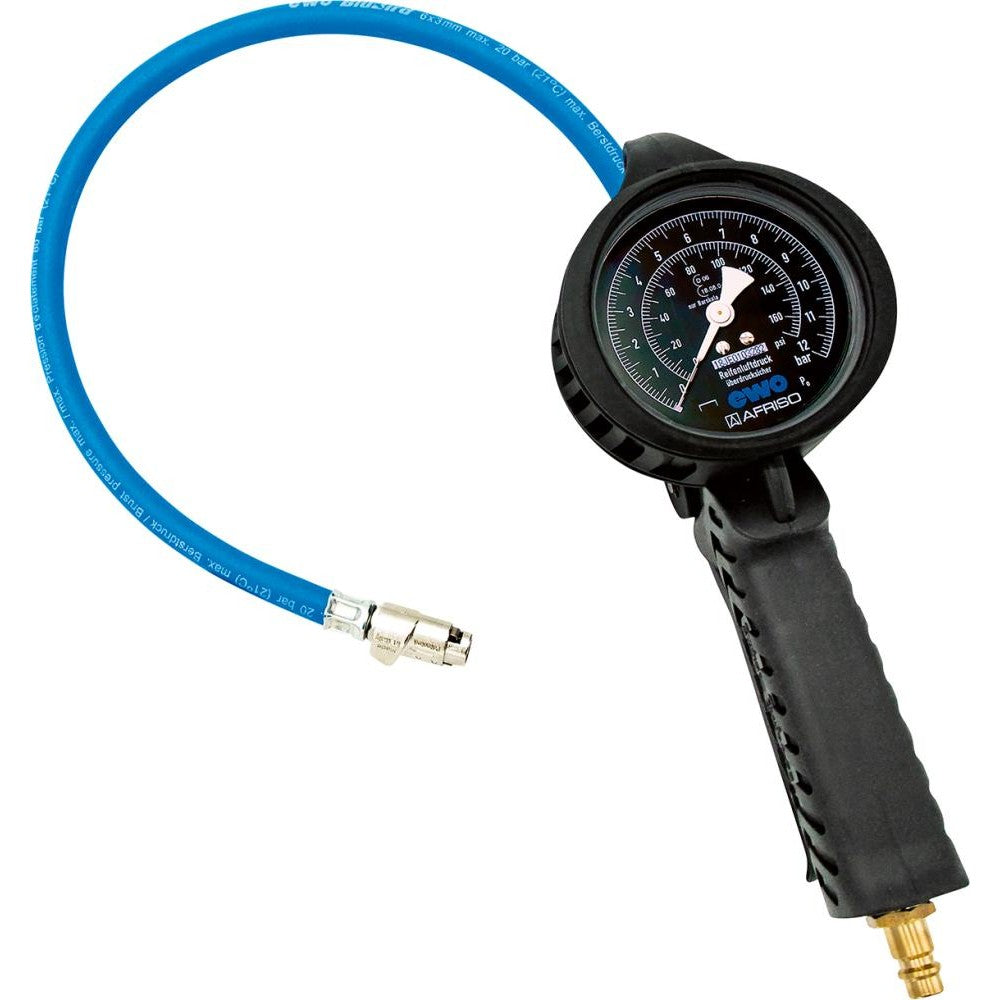 Manometru de umflare a anvelopelor airstar•Mâner metalic ergonomic acoperit cu cauciuc•Pentru uz profesional în companiile de montare a anvelopelor, ateliere auto și flote de vehicle •Dovedit, design care facilitează întreținerea cu manetă de acționare cu o singură mână •Conexiune aer comprimat printr-un mufa de cuplare DN 7.2•Max. Presiune de lucru: 12 bar•Interval de vizualizare: 0-12 bar; Subdiviziunea: 0.1