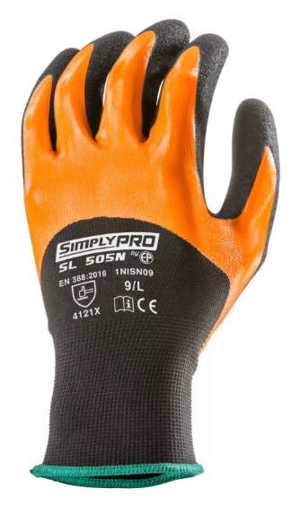 Manusi de protectie EUROLITE, marimea 6, dublu strat, antialunecare, negru/portocaliu, COVERGUARD Baza din poliester negru rezistent la uzura, cu finetea de tricotare 15 Impregnare neteda cu nitril de culoare portocalie pe palma si spatele mainii pana la incheietura si nitril granular negru anti-alunecare pe palma Capacitate excelenta anti-alunecare chiar si in medii uleioase Protectie excelenta impotriva riscului de dermatita (inflamatia pielii), fara silicon Design extrem de confortabil, forma care se muleaza pe deplin pe mana Manseta flexibila, cauciucata Standard UE: EN 388:2016 4121x