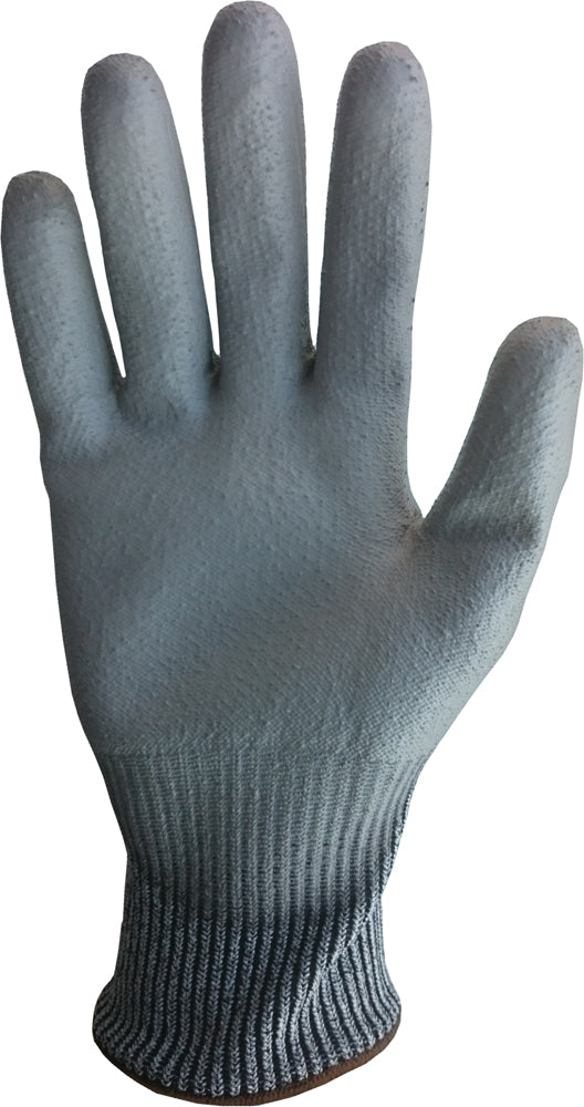 Manusi de protectie pentru asamblare EUROCUT, anti taiere, marimea 7, EUROTEHNIQUE Manusi de baza multifibre (65% HPPE, 25% nailon, 10% Spandex®), cu rezistenta puternica la rupere si uzura, rezistenta la taiere, tricot de 13 Imersie PU, gri, pe palma, rezistenta la uzura Manseta cauciucata, dos aerisit Standard UE: EN 388:2004 4343, EN 388:2016 4342C