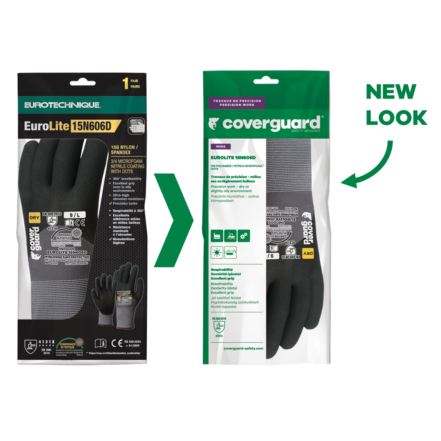 Manusi de protectie pentru precize, EUROLITE, marimea 6, imersie nitril negru microspongios + PE, EUROTECHNIQUE Din nailon /spandex gri cu rezistenta mare la rupere si uzura, tricot de 15 Imersate in latex negru, microspongios in zona palmei Dos aerisit, manseta cauciucata Usoare, exceptional de confortabile, se muleaza perfect pe mana, cu aerisire atat in palma, cat si pe dosul palmei Clasă Eco-Tex® Gama larga de marimi Standard UE: EN 388:2016 4131x