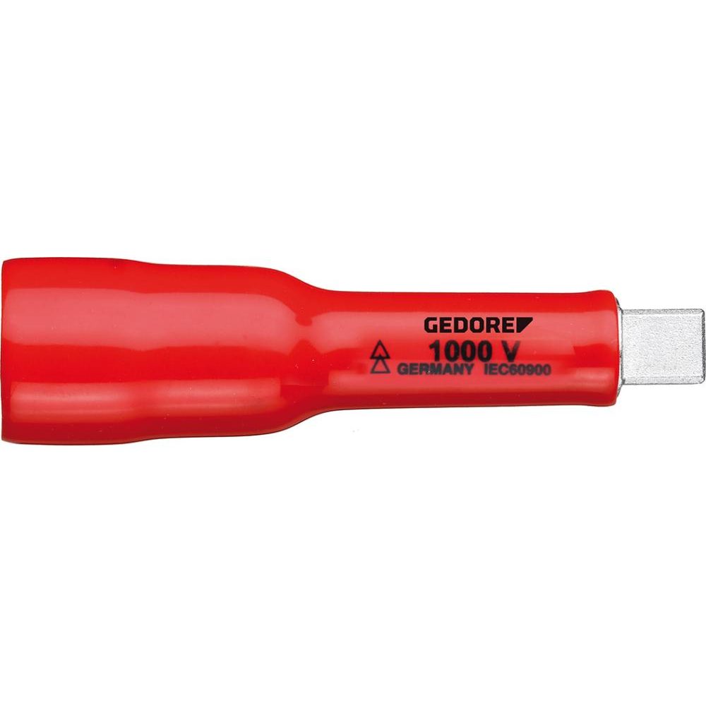 Prelungitor tubulara, izolat VDE 3/8", lungime 75 mm, izolatie electrica, GEDORE Otel crom-vanadiu 31 CrV3 Cu surub blocare pentru fixarea tubularei 4 canturi DIN 3120-C 10, ISO 1174 Izolat VDE pana la 1000 V conform EN 60900 / IEC60900