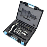 Set unelte pentru pretensionare arcuri amortizoare McPherson, KL-0029-20 K Potrivit pentru amortizoare McPherson în special la VW, Audi, Seat și Škoda pe platformă MQB, NSF, PQ25 sau PQ35 Pentru îndepărtarea și instalarea simplă a amortizoarelor prin pretensionare sau reducerea lungimii totalePoate fi utilizat indiferent de forma sau pasul arculuiNu este nevoie de intervenții la arcNu este nevoie de demontarea fuzeteiNu este nevoie de alinierea roțilorEconomii însemnate de timp și costuri și siguranță maximă a utilizatoruluiPrin seturile de completare suplimentare se potrivește și la alte vehicule Indicație:Aparatul de tensionat arcuri nu trebuie folosit niciodată pentru dezasamblarea suporturilor de arcCapacitate de încărcare (max.): 17.500 NDeschidere (min/max): 250-410 mmDistanță de tensionare: 160 mmDepozitare: în cutieAcționare piulițe de strângere: 27 mm