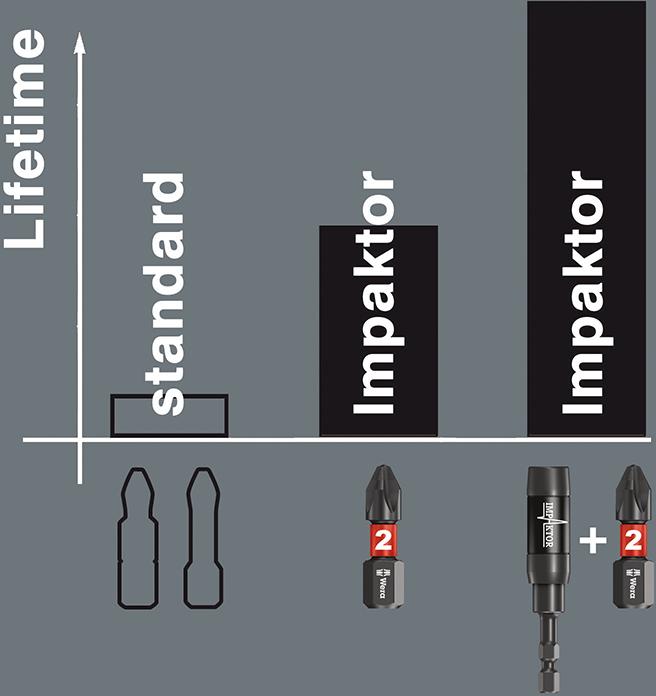 Biti 1/4" de impact, pentru surburi cruce PZ, Impaktor•DIN 3126-E 6.3; ISO 1173 •Antrenare diamantata, impotriva alunecarii surubului •Tehnologie de impact pentru durata de utilizare peste medie •Pentru utilizare cu masini de impact/ rotopercutoare •Combinatia celor 2 zone de torsiune in port-bit Impaktor si zona de torsiune in bitul Impaktor duce la asa nucuul sistem TriTorsion • Identificare usoara a dimensiunii prin codul de culoare
