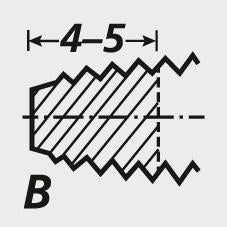 Tarod masina pentru gaura de trecere, stratificat TiN Filet metric ISO DIN 13 HSS-E Toleranță ISO 2 6H Forma B (4-5 filete) M1.4-M10 DIN 371 cu coada intarita M12-M30 DIN 376 cu coada redusa