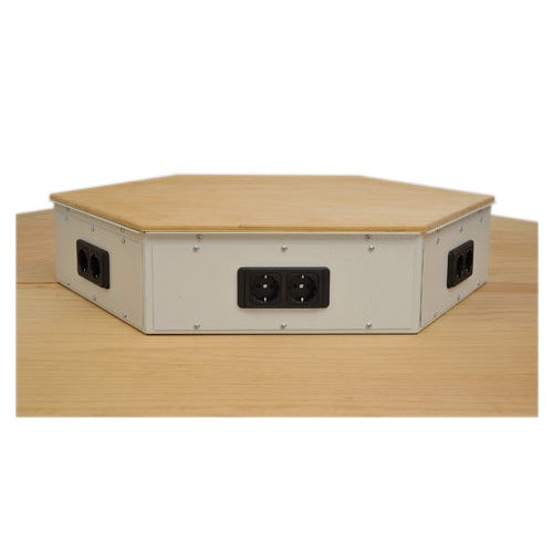 6-Eck Energieaufsatz, 2er Schuko-Steckdosen je Arbeitstaltung, Abdeckung Buche Multiplex 25 mm - 6-Eck Energieaufsatz, 2er Schuko-Steckdosen je Arbeitstaltung, Abdeckung Buche Multiplex 25 mm ist auf Lager und wird versandt, sobald es wieder verfügbar ist