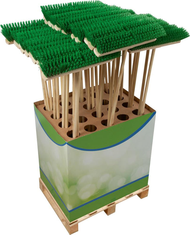 Expoziție mătură de grădină/stradă•Lemn de șa de fag•Peri de elaston•Cu mâner•Lungime: 130 cm•Latime : 50 cm< br />•Diameter of man 24 mmLivrare: 36 bucăți într-un afișaj.Notă: Nu este un articol de stoc. Achiziția are loc în scurt timp. Afișare alertă! Recumpărați VE! Articolul este unreturnable!