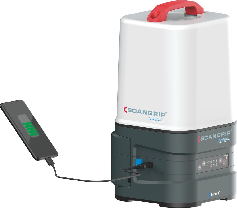 Akku-LED-Arbeitsleuchte AREA 10 CONNECT•Hauptlicht 240 fest verbaute COB-LED•Bluetooth®-Beleuchtungssteuerung•Leuchtstärke in 5 Stufen (10000/7500/5000/2500/1000 %) einstellbar•Abstrahlwinkel 360°oder 180° wählbar•Gleichmäßige und großflächige Beleuchtung•Gummiertes Kunststoffgehäuse, bruch-, schlagfest, staub- und wasserdicht•Standfuß mit Stativgewinde, Haken für flexible Platzierung und Tragegriff•Der integrierte Reserveakku verhindert zuverlässig, dass plötzlich das Licht ausgeht•Betrieb über CAS-kompatiblen Li-Ion-Akku oder Scangrip-CAS-Netzteil (beides nicht enthalten)•Schutzart IP65, Einsatz im Innenbereich sowie den dauerhaften Einsatz im Außenbereich•Betrieb über Akku und Netzkabel, Anschluss 230 V, 50 Hz•Arbeitstemperatur von –10 °C bis +40 °CLieferung: Ohne Akku und ohne Netz.Hinweis: Für den Einsatzanschluss Für Akkus der Marken Bosch, Dewalt, Fein, Festool, Flex, Makita und Milwaukee wird ein separat erhältlicher Schnittstellen-Adapter der Connector-Serie benötigt.
