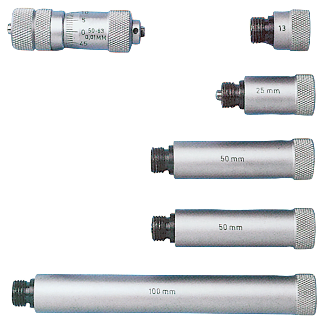 Analogue inside micrometers with modular extension rods ALPA the composition includes an inside micrometer head and several extension rods. Micrometer head