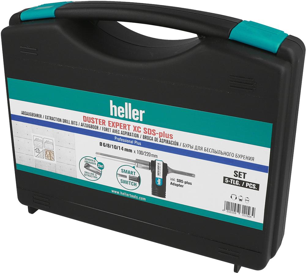SDS-plus-Absaugbohrer-Satz Duster Expert XC•Absaugbohrersystem mit werkzeugless wechselbaren Bohrköpfen•Extragroße Kopföffnungs führen das Bohrmehl nach Innen ab•98 % des Bohrstaubs werden direkt bei der Entstehung entfernt•Entspricht den aktuellen Normen zu Staubemmisionen und Staubvermeidung•Ideal zum Setzen chemischer Anker und für den InnenausbauSieferung: Im Kunststoffkoffer.Inhalt: 4 Bohrköpfe 6; 8; 10; 14 mm1 SDS-plus-Bohrkopfaufnahme mit Saugadapter