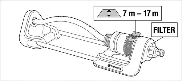 Aqua S oscillating sprinkler For even watering of rectangular and square lawns Continuously adjustable spray range and width With horizontal metal filter (prevents dirt from entering) A cleaning needle is attached to the device for cleaning clogged nozzles Aluminum-reinforced nozzle tubes: particularly tear-resistant Frost- and weather-resistant