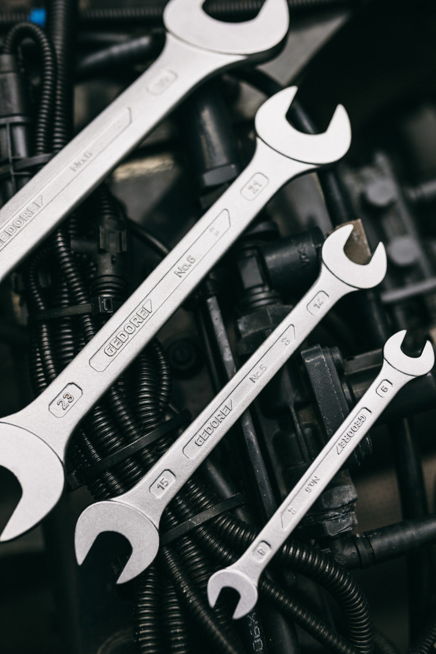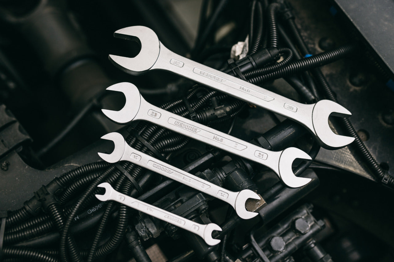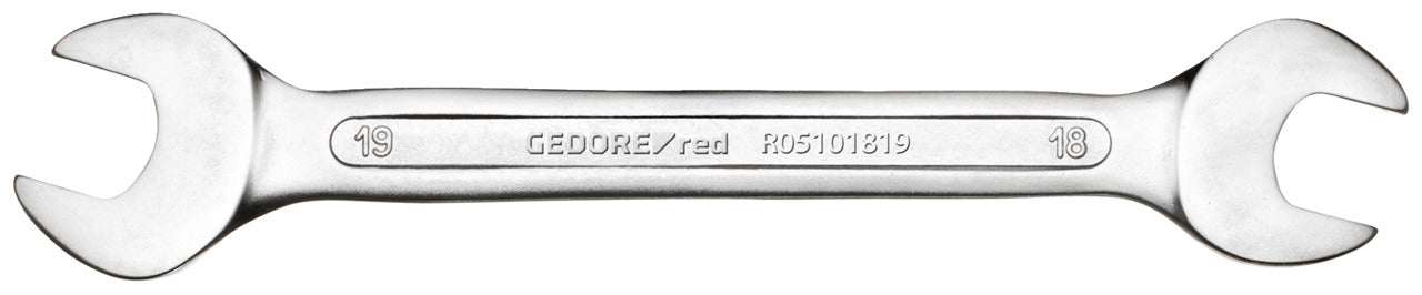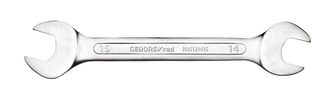 Open-end wrench Matt chrome Chrome-vanadium steel Forged Open-end wrench head 15° Flat head Double T-profile handle DIN 3310