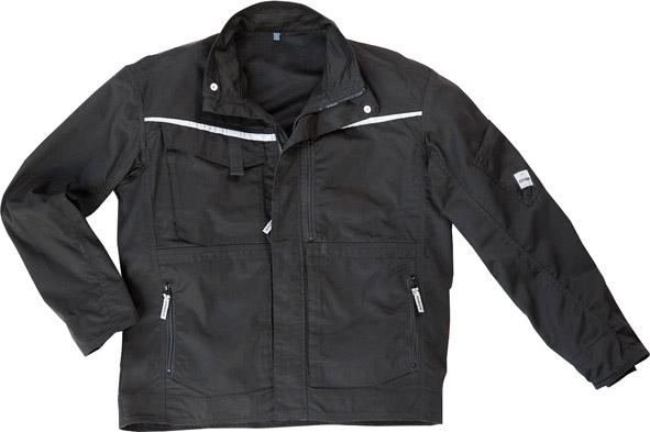 Champ Work Jacket Features: Sporty work jacket with hidden zipper Chest pocket and side pockets with zipper Chest pocket with flap and integrated mobile phone pocket Open left arm pocket Elastic cuffs Mesh insert at the back for additional ventilation Material: 65% polyester, 35% cotton, TC Twill 280 g/m2