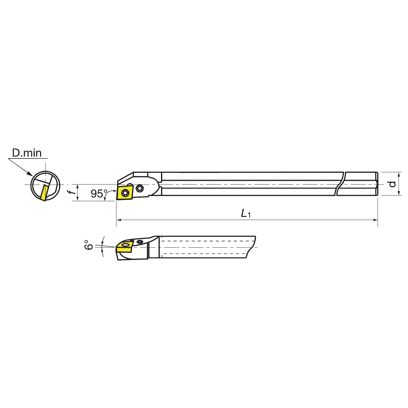 Internal turning tool holders for negative inserts KERFOLG TURN form C - A....PCLNR/L with lever lock, ideal for internal turning.