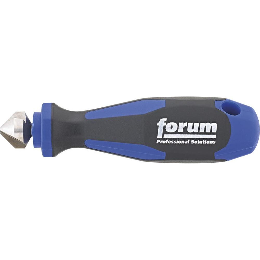 HSS hand-held deburrer/tamper, 90°, DIN 335-C, FORUM HSS Point angle 90° 3 cutting edges Deburrer and deburrer with ergonomic plastic handle For deburring, cleaning and chamfering holes