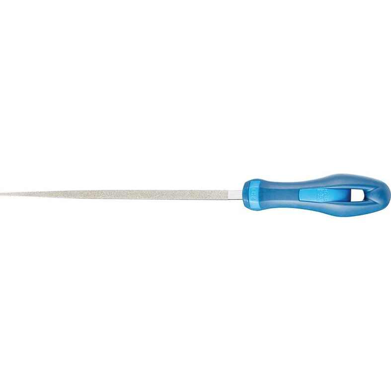 Diamond file for workshop, with handle, square (4-edged) Diamond part length 180 mm Grit D 151 (according to FEPA standard) Ergonomic handle Universal use in tool making Note: Use as little lubricant as possible