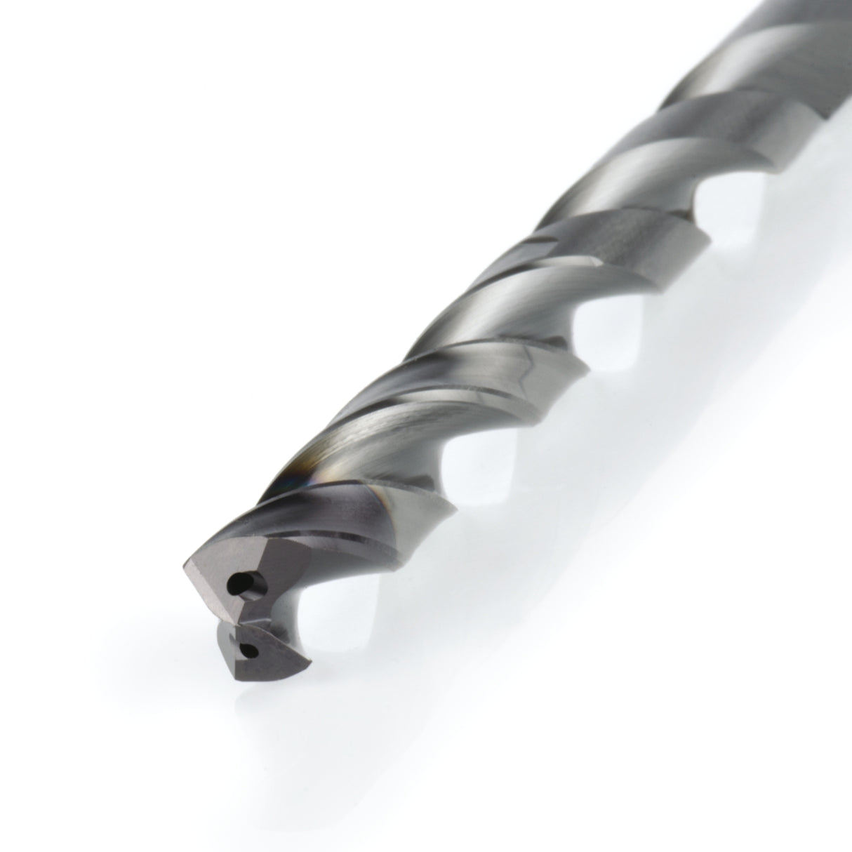 Burghie din carbură solidă cu tijă ranforsată cu găuri KERFOLG HD 12XD cu găuri, cu tratament de suprafață Devil și elice avansată, concepute pentru evacuarea optimă a așchiilor pe multe materiale.