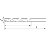 Burghie din seria HSS KERFOLG long bright cu faze nitrurate, spirală avansată, subțiere a miezului și caneluri largi cu margine spate foarte rotunjită.