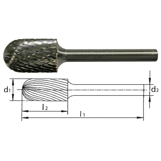 Burghie rotativă din carbură PFERD WRC. În formă de cilindru cu cap sferic. Potrivit pentru prelucrarea tuturor materialelor cu rezistențe diferite. Ideală pentru prelucrarea