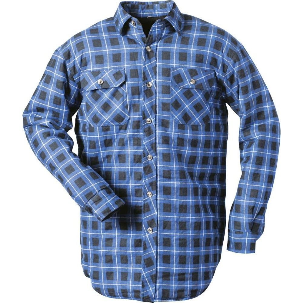 Camasa termo, albastru in carouri Caracteristici: Două buzunare la piept cu clape Tivul rotunjit Manșete cu închidere cu nasturi Material: Material exterior: 100% bumbac Captuseala: 100% poliester Captuseala exterior: 100% bumbac