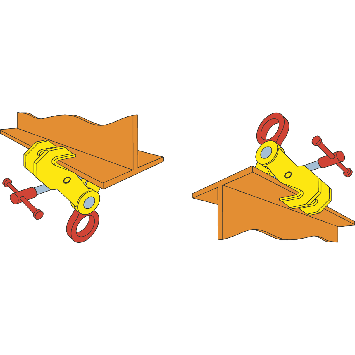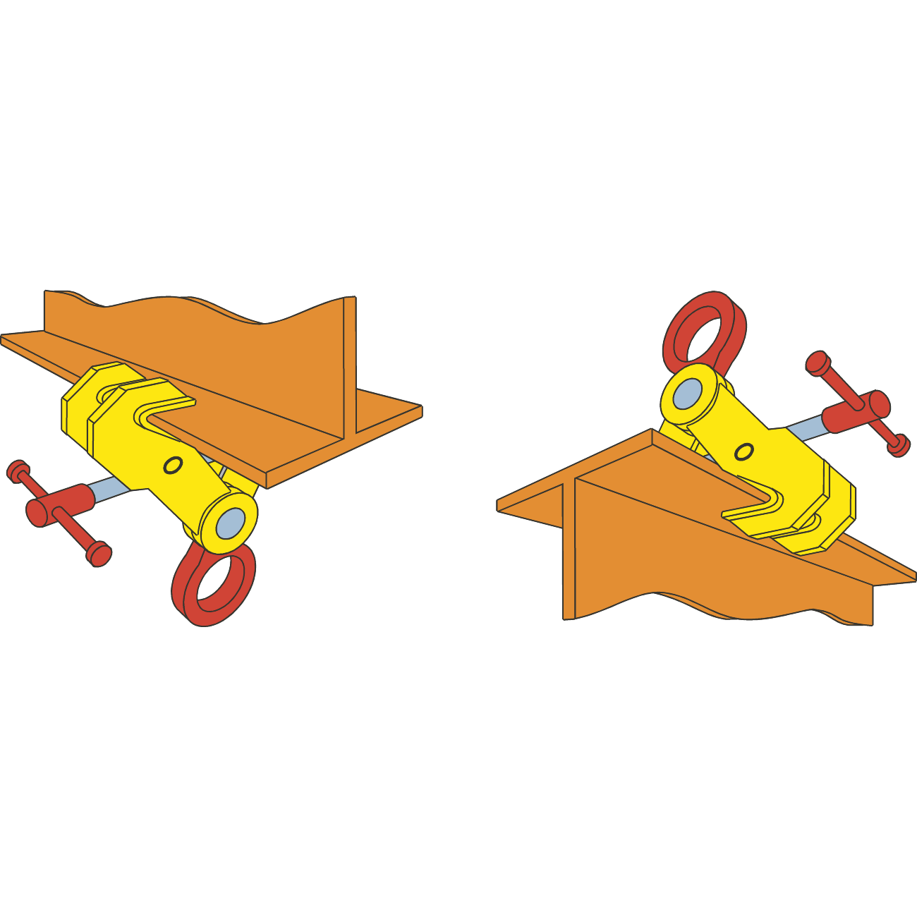 Cleme cu șurub de ridicare cu știft filetat M7035 TERRIER pentru manipularea barelor profilate. Corp și componente realizate din oțel de înaltă calitate. Echipate cu fălci de închidere concentrice simetrice.