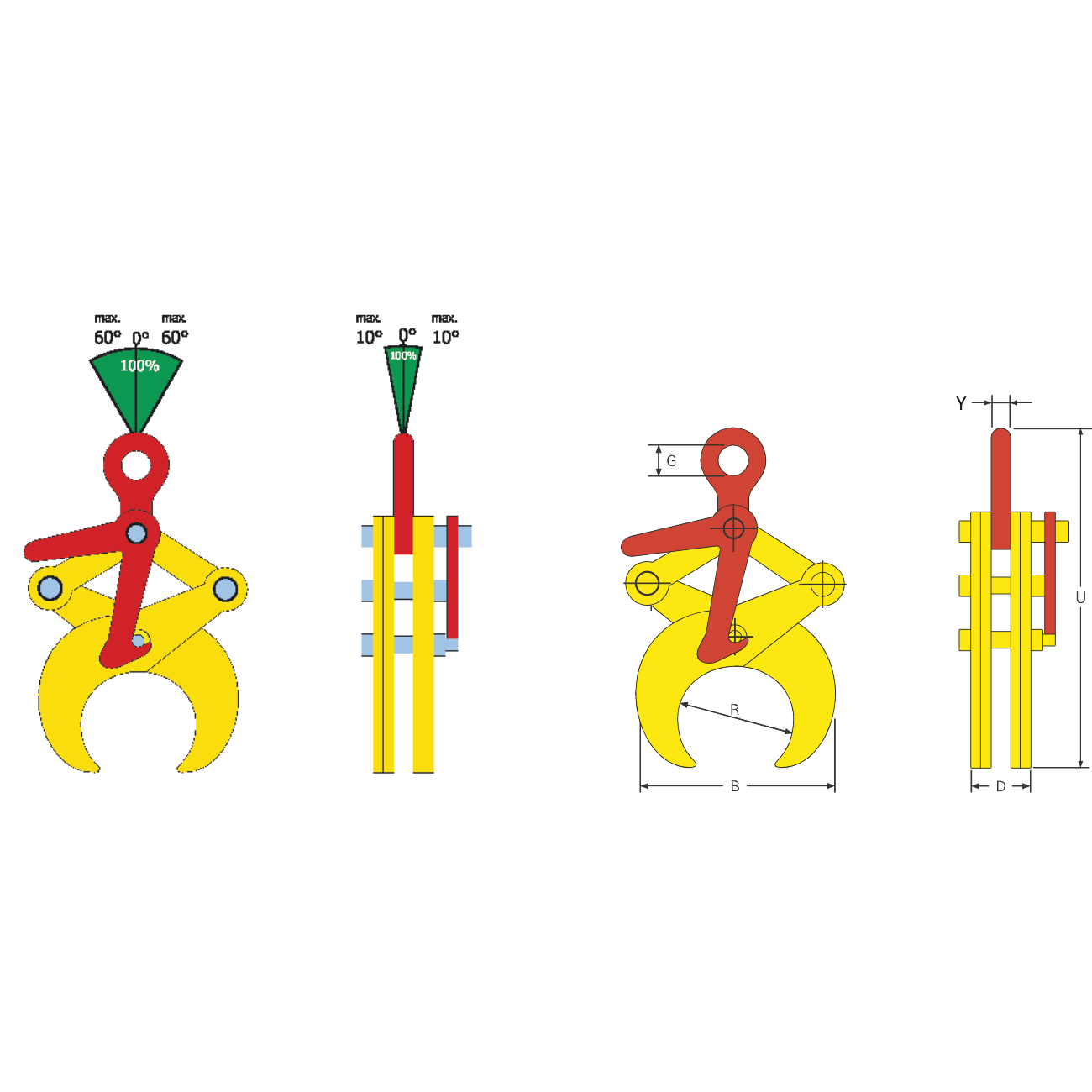 Cleme de ridicare M7040 TERRIER pentru manipularea suprafețelor rotunde. Corp și componente din oțel de înaltă calitate, pârghie de închidere cu deschidere automată atunci când sarcina este depusă.