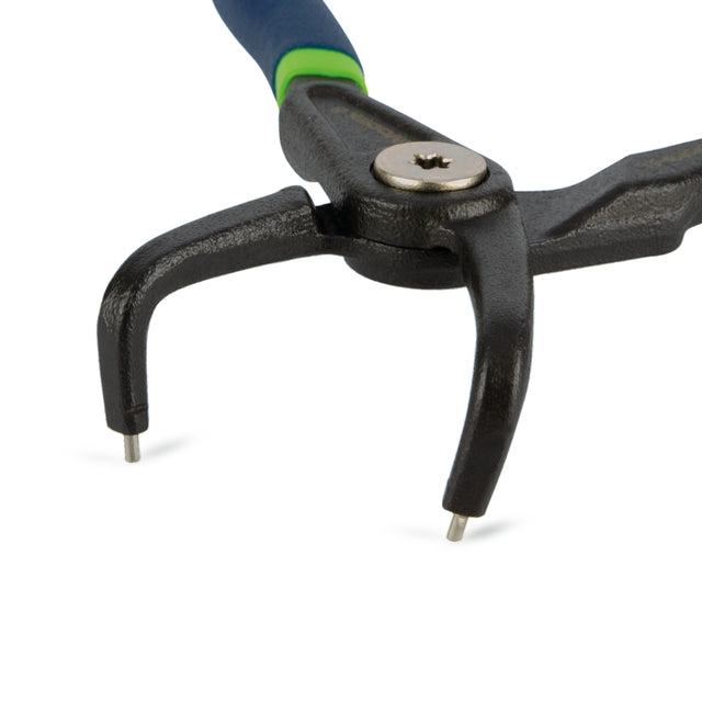 Clește cu nas îndoit 90° pentru circlips interne WODEX WX3405, corp din oțel crom-vanadiu călit cu vârfuri din oțel de înaltă performanță pentru utilizare continuă la solicitări mari. Unghiul vârfului anti-alunecare permite circlipului să fie ținut în siguranță de vârfuri.