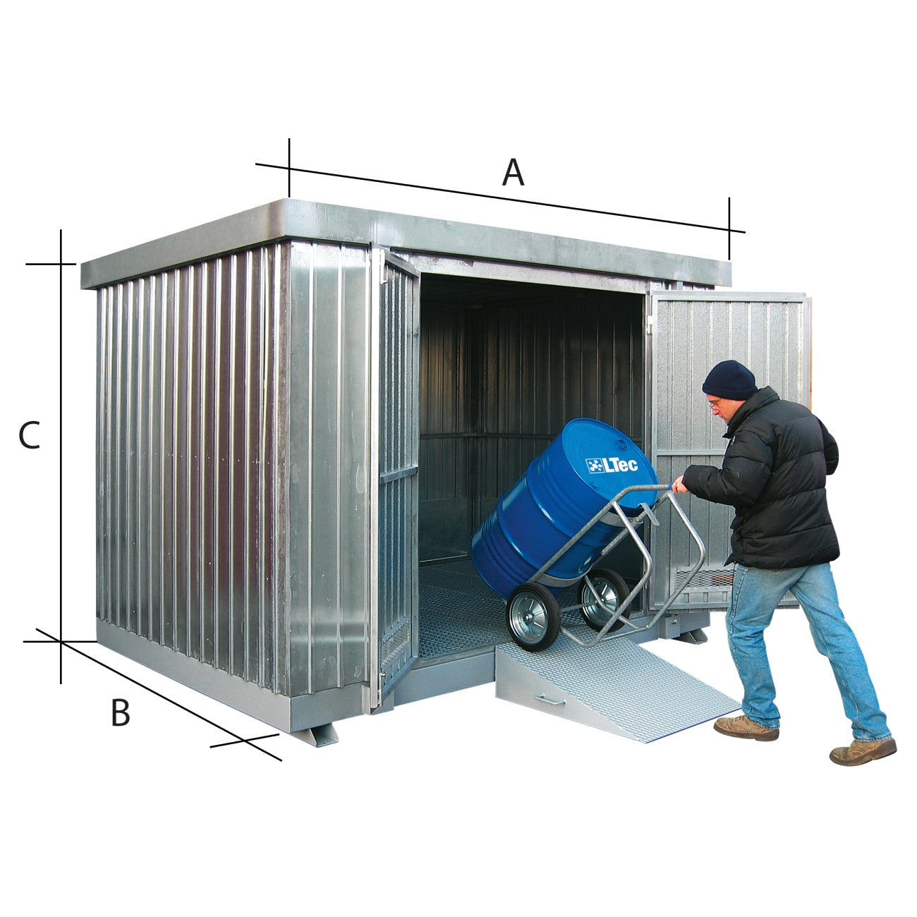 Containere pentru substanțe poluante și inflamabile. Sunt potrivite pentru depozitarea substanțelor periculoase chiar și în containere mici dacă sunt extinse cu rafturile opționale, volum de colectare 300/1000 litri.
