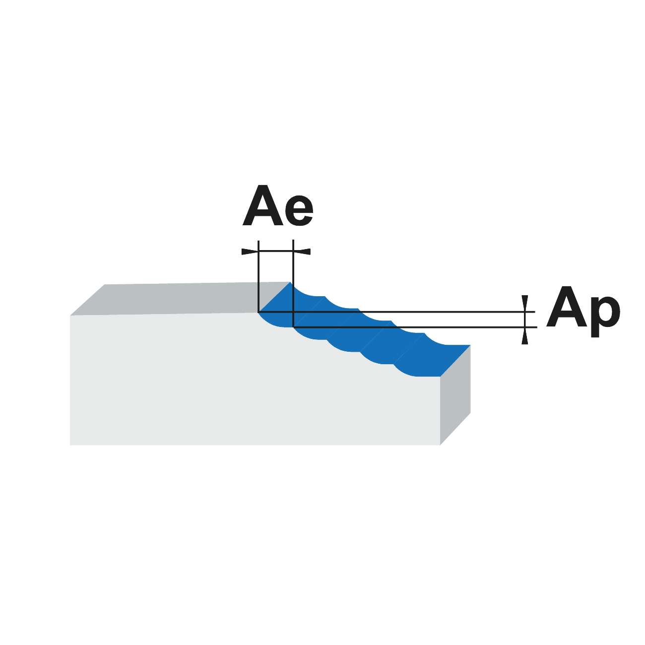 Micro freze cu rază de colț din carbură solidă universală KERFOLG Z cu tratament de suprafață WIND, ideale pentru operații de finisare și semifinisare pe materiale cu duritate de până la 60 HRC.