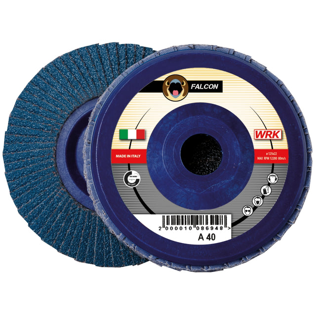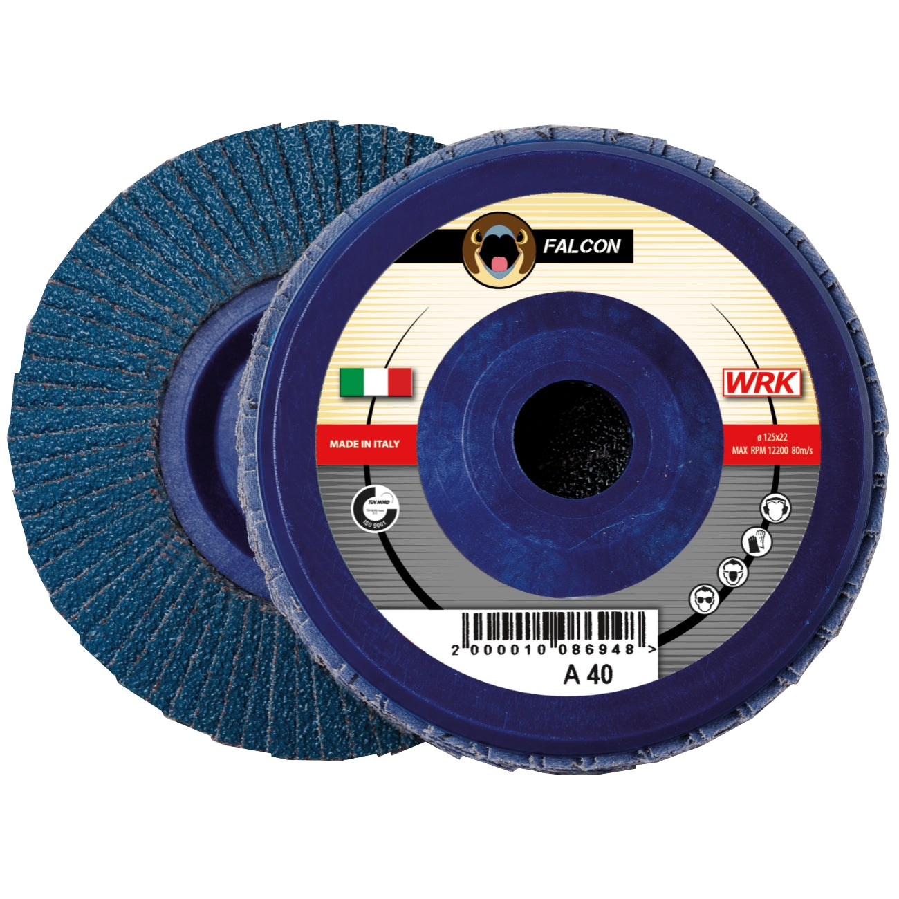 Discuri flap cu suport din nailon din pânză abrazivă din zirconiu WRK FALCON PLASTICA execuție monolamelară cu tampoane de suport