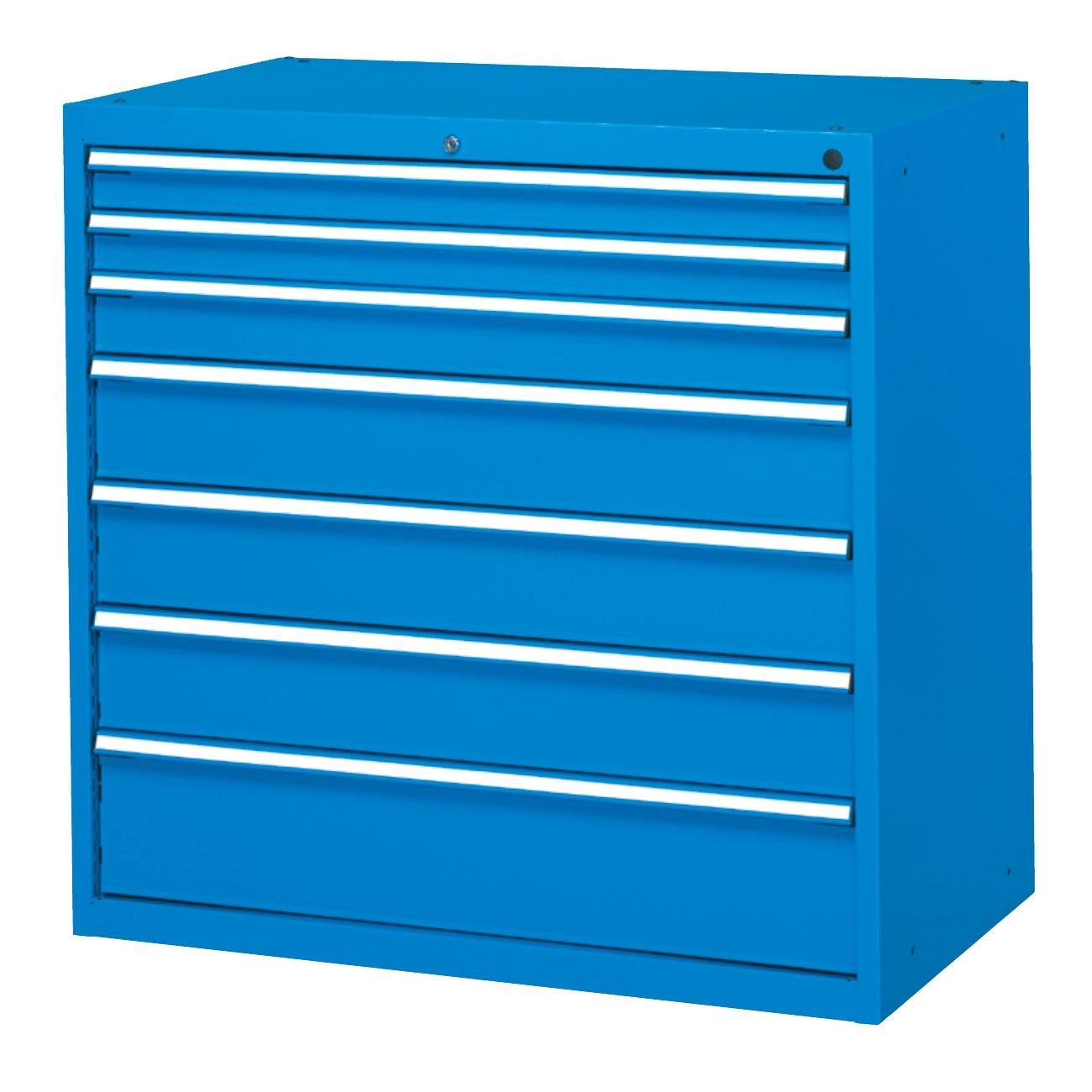 Dulapuri cu sertare cu extensie completă (100%), capacitate 50 kg, sistem de deschidere anti-înclinare, închidere centralizată, albastru RAL 5012.