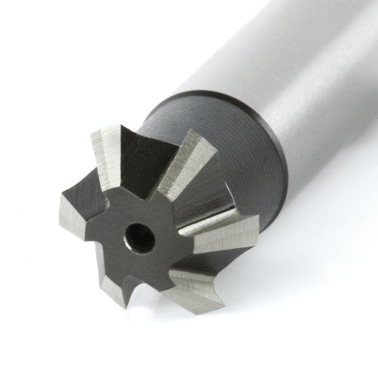 Freze cu coadă de rândunică inversată din HSSE WRK cu un tratament de suprafață lucios, ideale pentru frezare laterală, chamfer și adâncituri unghiulare pe toate materialele.