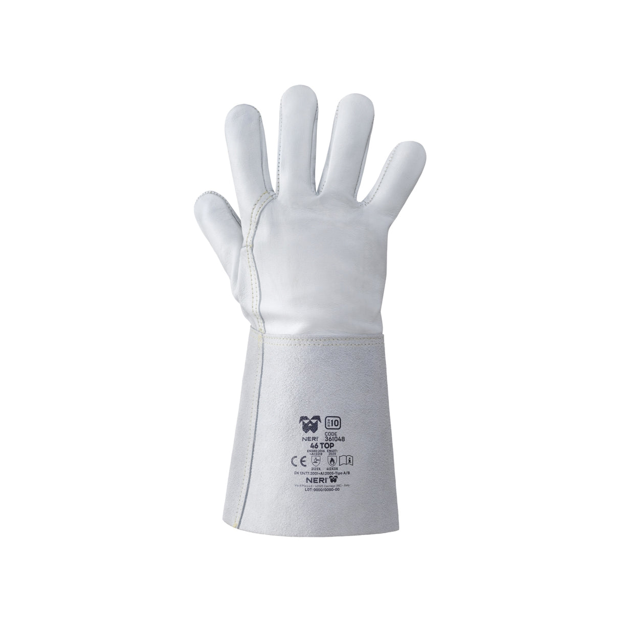 Mănuși de sudură TIG din piele de oaie cu manșete din piele de vacă pentru a proteja mâinile de abraziuni, tăieturi cu lama, rupturi și perforații de la cuie, așchii, spini. Datorită grosimii reduse permite să aveți o sensibilitate bună, fără a neglija protecția. Comportament excelent la foc.