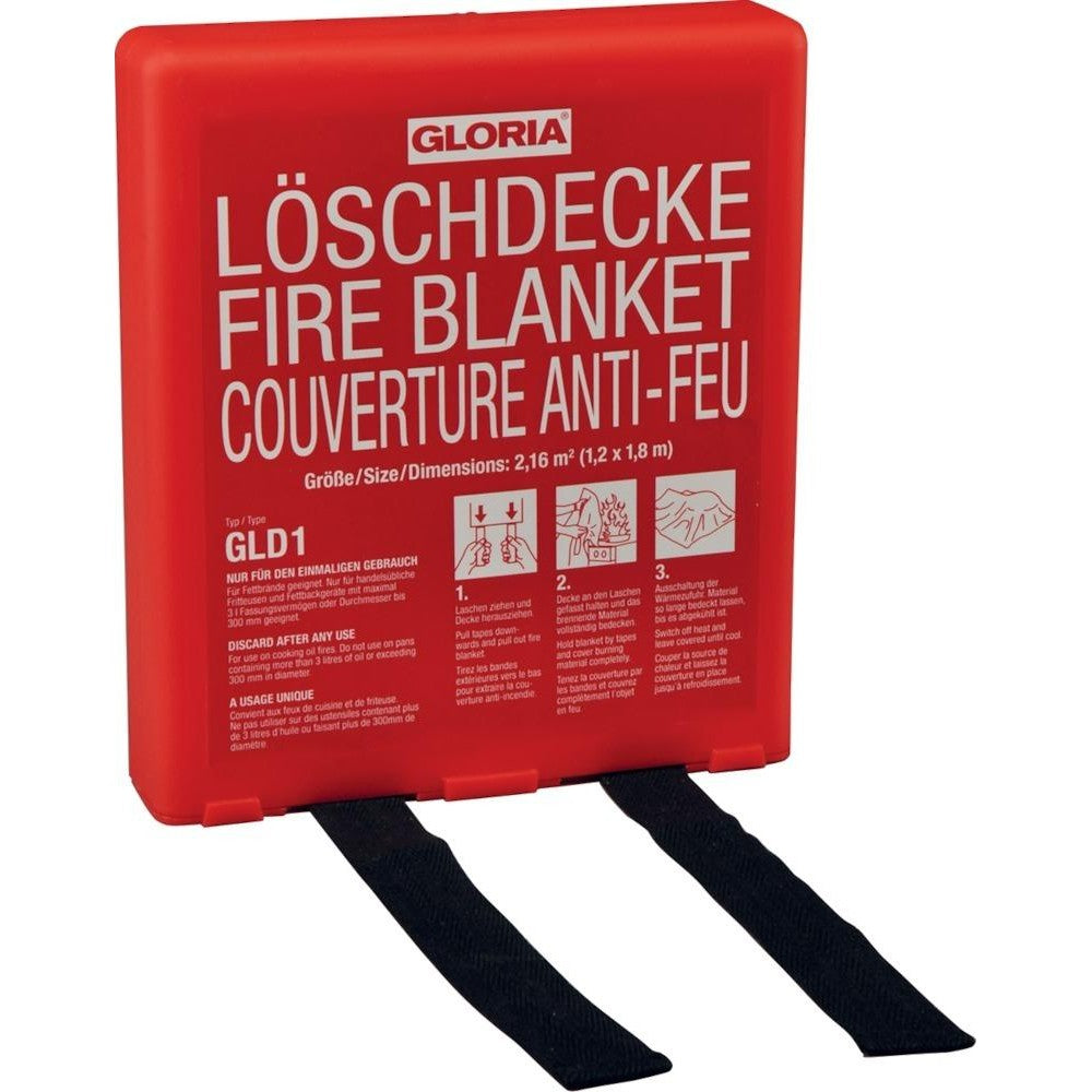 Patura ignifuga Pătură de stingere fabricată din țesătură din fibră de sticlă acoperită cu silicon Aprobat în conformitate cu DIN EN 1869:2001 Într-o cutie rigidă robustă cu orificii de agățare Pentru friteuze disponibile în comerț și friteuze cu o capacitate maximă de 3 litri Potrivit pentru stingerea incendiilor care se extind la hainele personale Notă: instrucțiuni de utilizare în germană, engleză și franceză