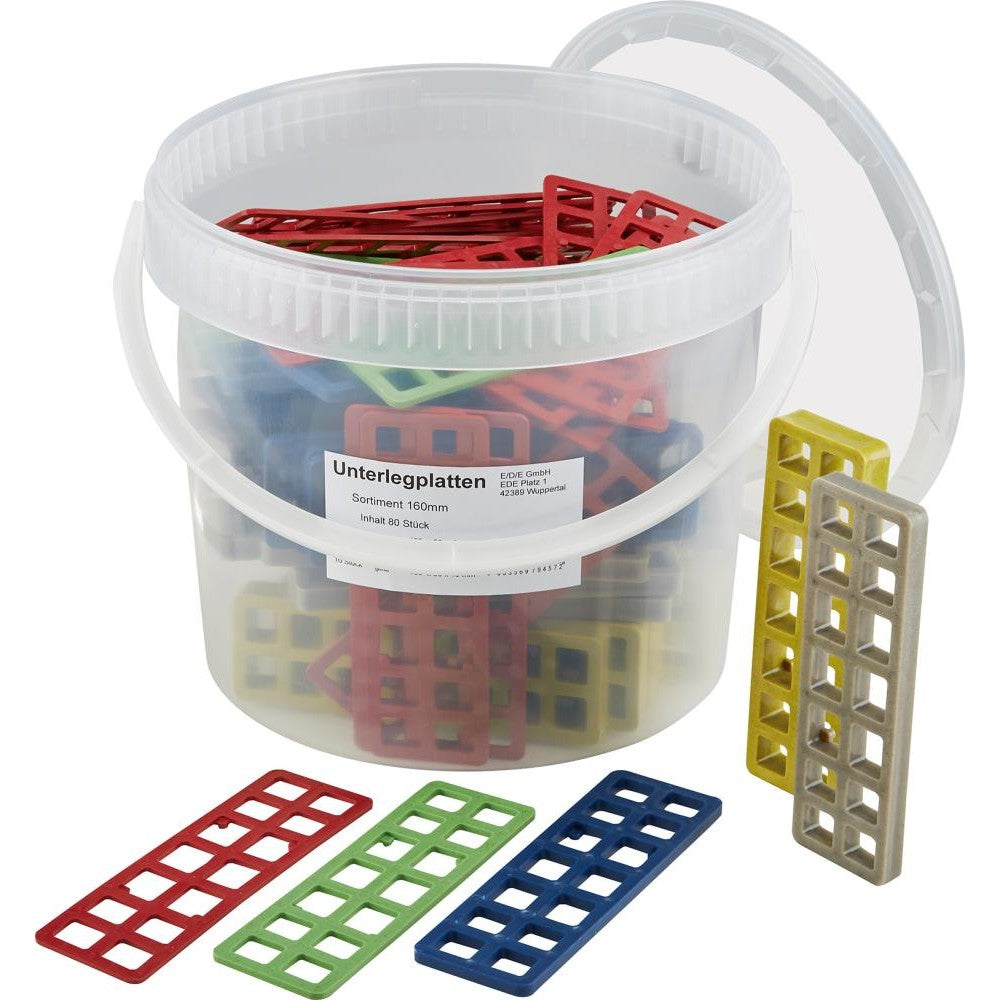 Pene de nivelare pentru structuri din lemn Pentru nivelare și subzidire pentru construcții din lemn și construcții cu stâlpi din lemn Livrare: Într-o pungă Conținut: 20 bucăți, 160 x 50 x 2 mm, roșu 20 bucăți, 160 x 50 x 3 mm, verde 20 bucăți, 160 x 50 x 5 mm, albastru 10 bucăți, 160 x 50 x 10 mm, gri 10 bucăți, 160 x 50 x 15 mm, galben