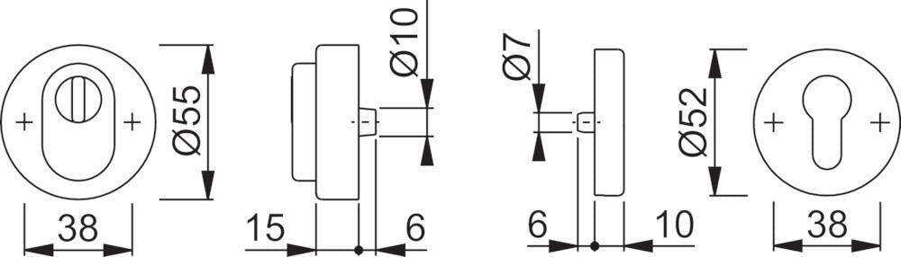 Pereche de rozete de protectie E42ZNSB-ZA/42HS Capacul cilindrului: Oțel PZ-perforat Substructură: Zamak la exterior, oțel la interior Came de susținere Fixare: ascunsă, continuă Șuruburi filetate M5