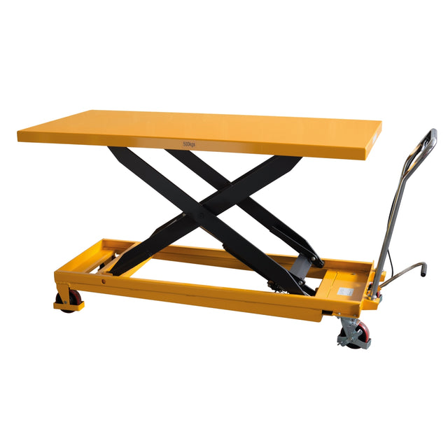 Platforme mobile de ridicare de o singură dată B-HANDLING. Structură solidă din oțel vopsit, pompă de picior cu cilindru de pompare și tijă de piston din crom dur, 2 roți fixe , 2 roți pivotante cu frână.