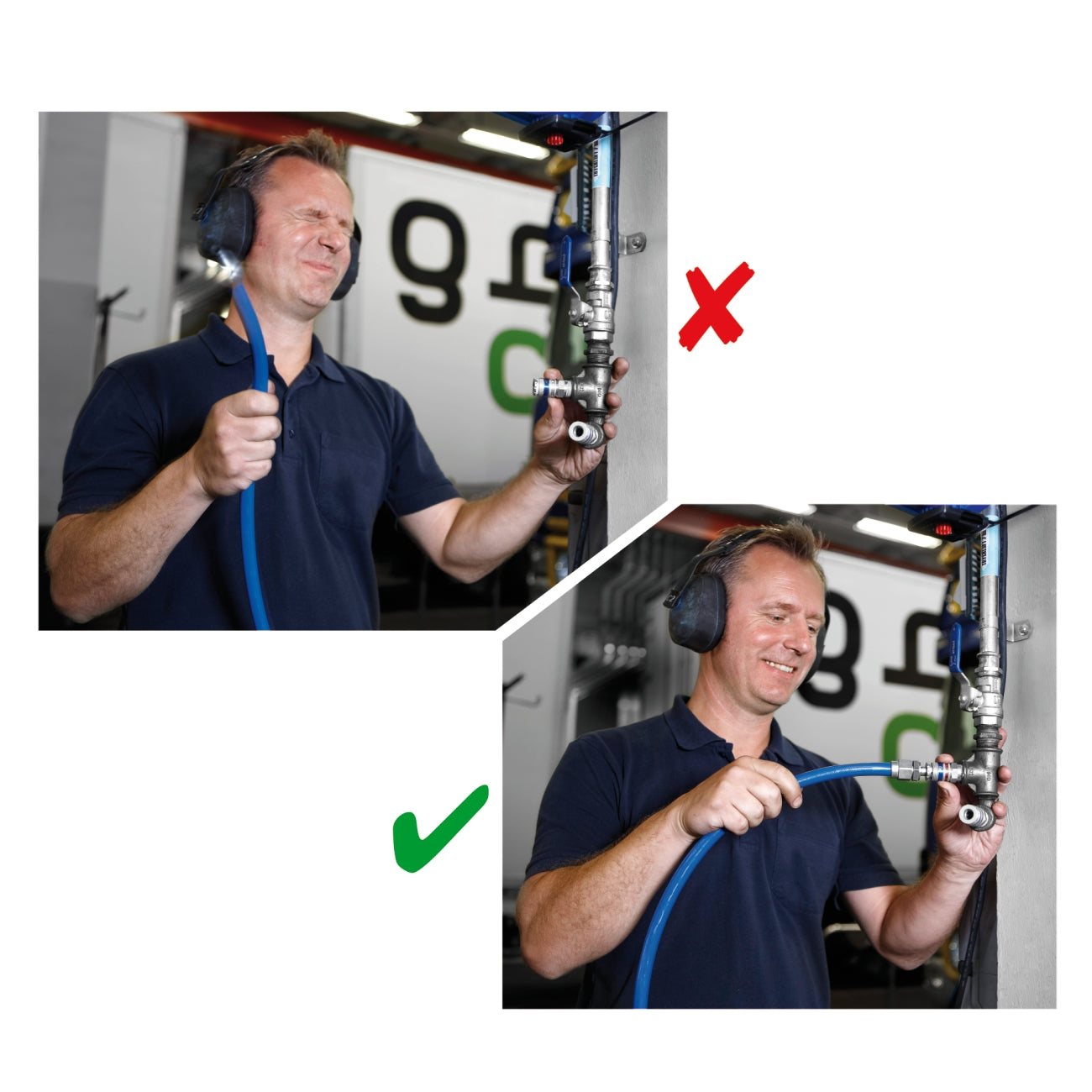 Racorduri și nipluri de siguranță seria 320 DN7.6 CEJN 10-320-200. Filetele masculine de pe cuplaje și nipluri sunt prevăzute cu etanșare preaplicată a filetului.