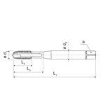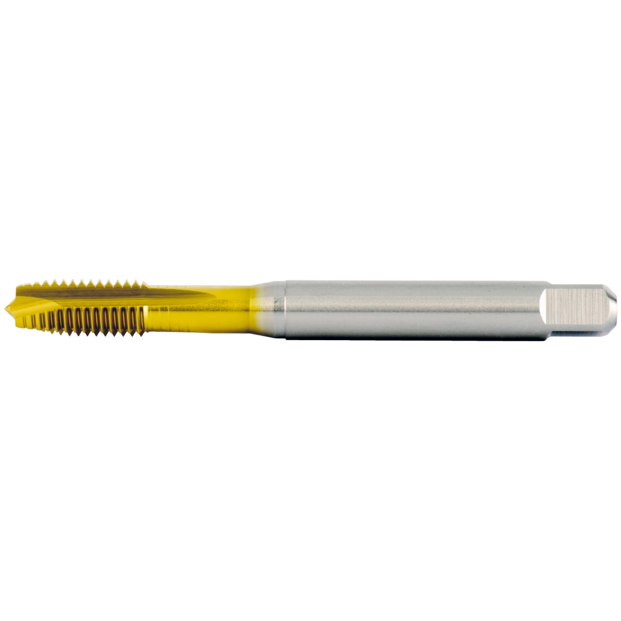 Robinet cu vârf spiralat KERFOLG pentru găuri de trecere M cu finisaj TiN, ideal pentru prelucrarea oțelului aliat cu o rezistență mai mică sau egală cu 45 HRC și a oțelului inoxidabil.