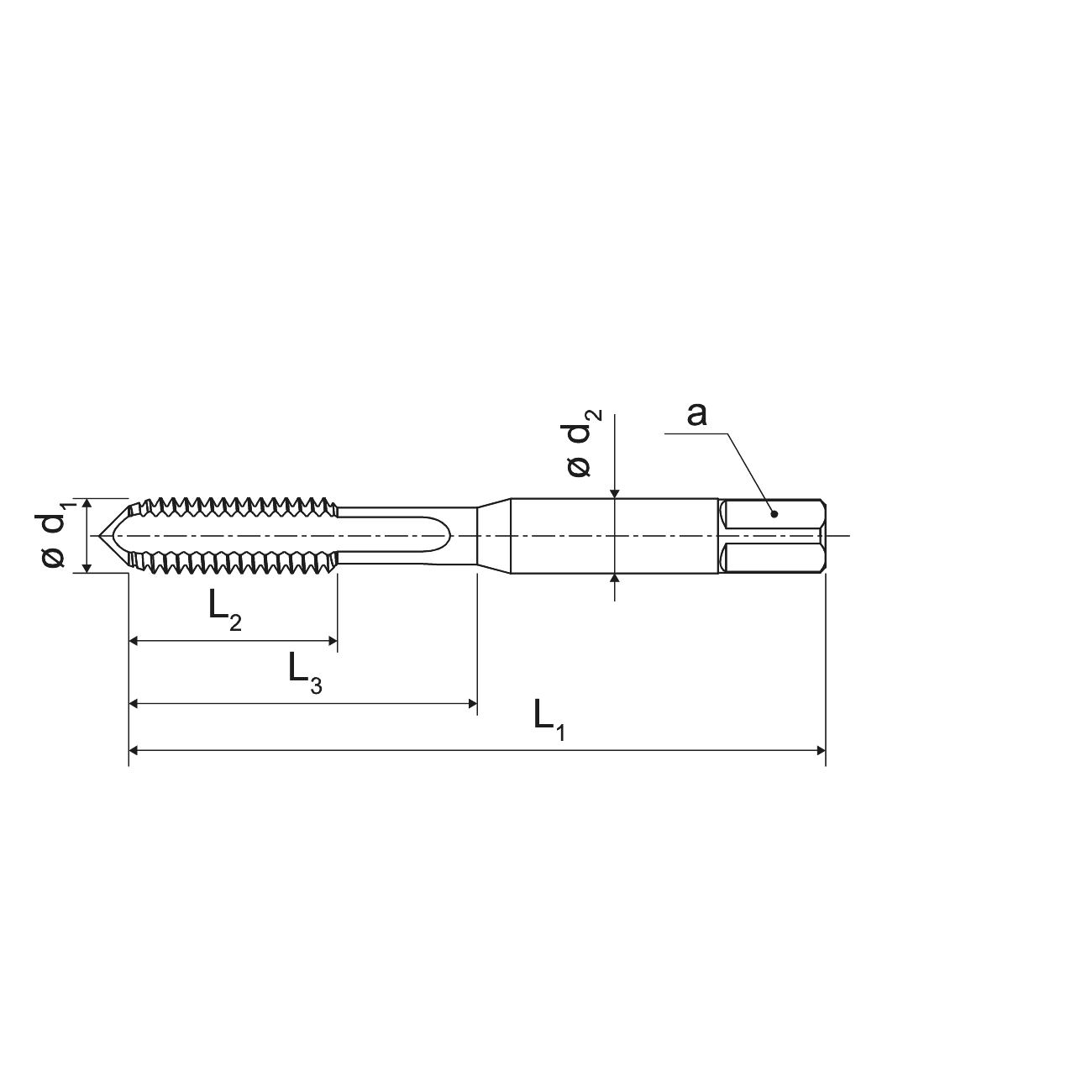 Robinet manual universal KERFOLG M pentru găuri oarbe și pasante în set de 3 piese cu finisaj de suprafață lucios, ideal pentru prelucrarea oțelului și a materialelor neferoase cu o rezistență de 850 N / mm² sau mai mică.