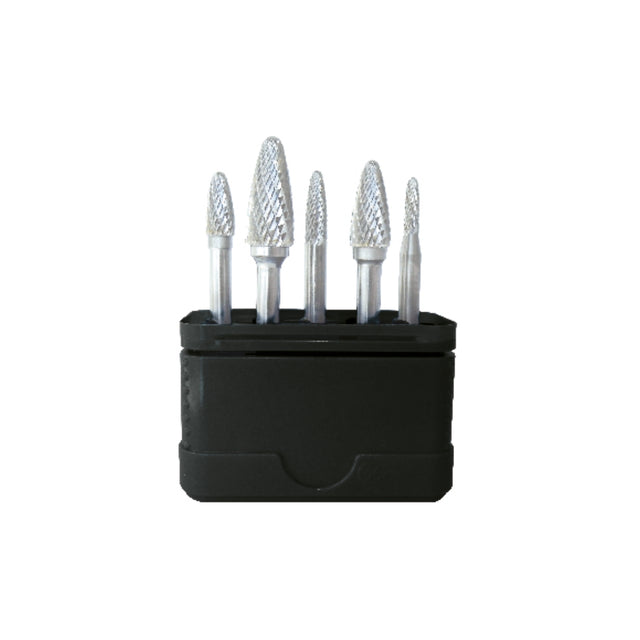 Set de 5 freze rotative din carbură WODEX RBF. Potrivite pentru prelucrarea tuturor materialelor de diferite rezistențe.