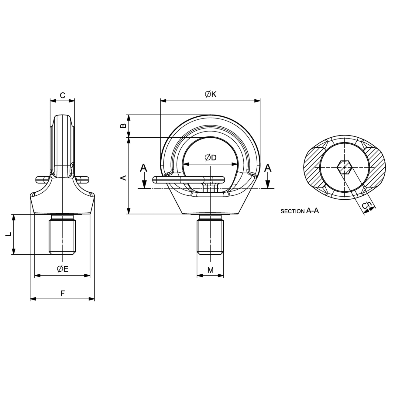 Șuruburi pivotante cu ochi din oțel clasa 80. Punct de ancorare pentru ridicarea sarcinilor prevăzut cu un orificiu filetat. Factor de siguranță 4 în toate direcțiile de încărcare.