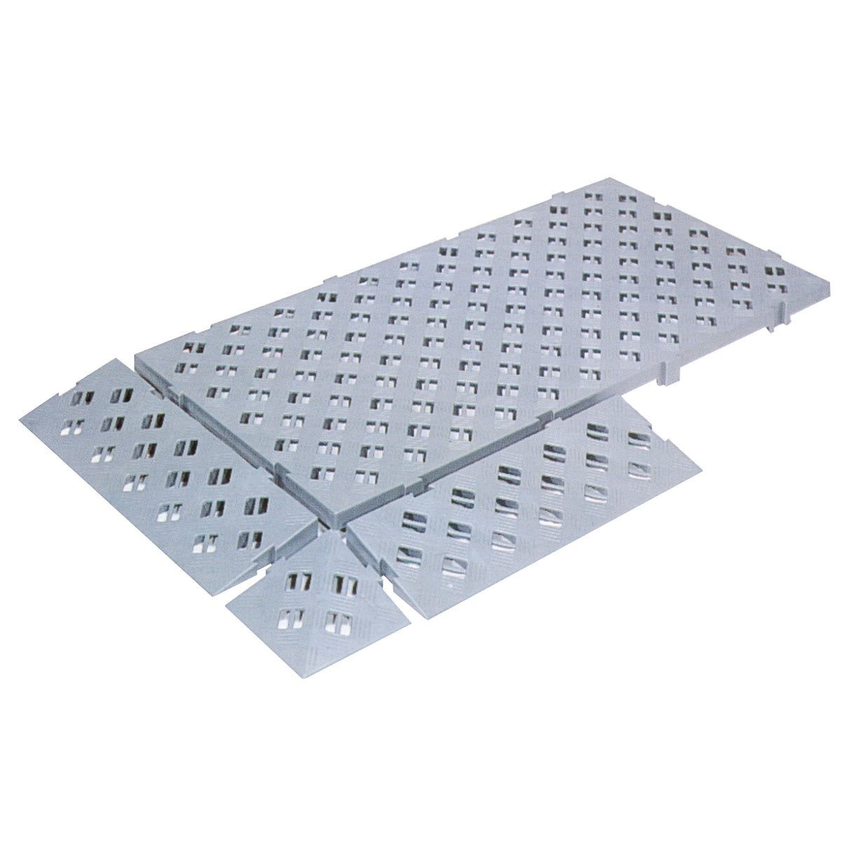 Tampoane modulare. Polietilenă de joasă densitate, izolatoare și rezistente la solvenți și acizi grași, antiderapante cu efect de amortizare, pot fi agățate în ambele direcții, culoare gri.
