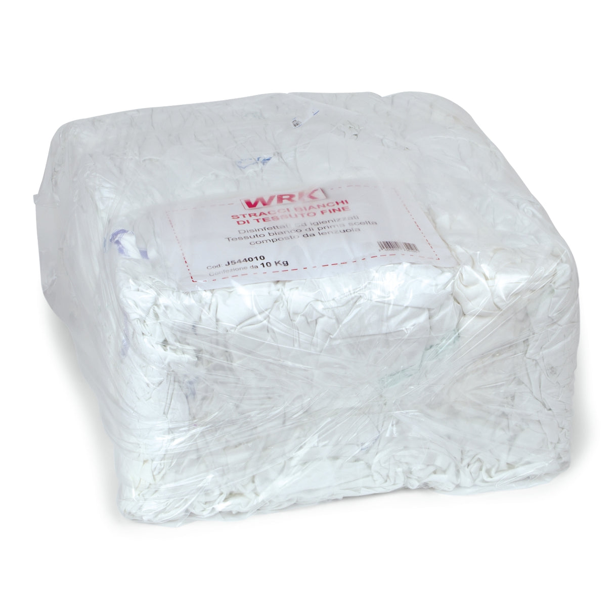 Cârpe albe de curățat din țesături fine WRK. Cârpe igienizate, din țesături mixte, cu foi albe. Livrate într-un ambalaj convenabil de 10 kg.