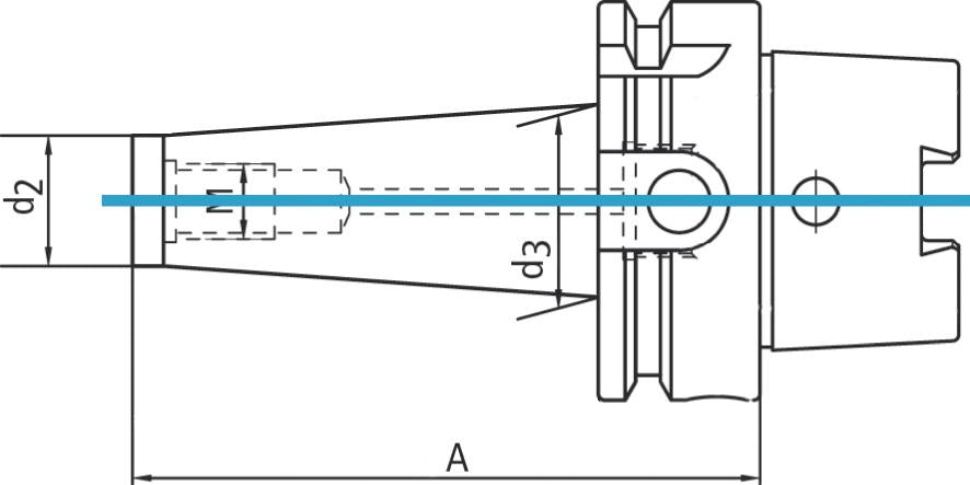 Mandrina pentru freza cu filet Oțel aliat de cementare, rezistență la tracțiune 950 N/mm² Călit HRC 58 ±2, adâncimea de călire min. 0,5 mm Toleranță unghi conic AT3 Concentricitate < 0,01 mm Echilibrat G6.3 / 15.000 min-1 ISO 12164-1 (DIN 69893) Forma A Răcire internă